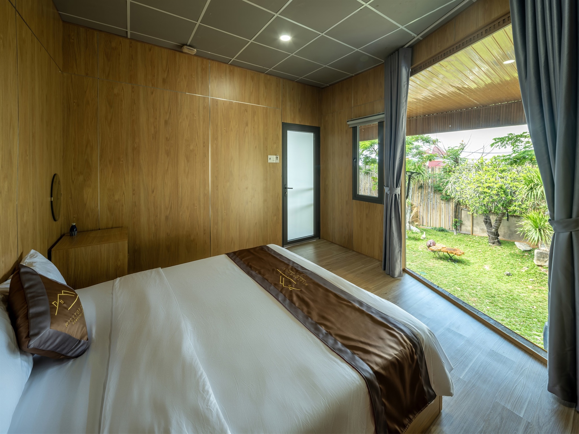Phòng Family được thiết kế với diện tích rộng hơn so với các hạng phòng tiêu chuẩn, sử dụng tông màu gỗ ấm áp kết hợp cửa kính lớn đón nắng và gió trời. Không gian mở giúp căn phòng luôn thoáng đãng, sáng sủa và dễ chịu suốt cả ngày.